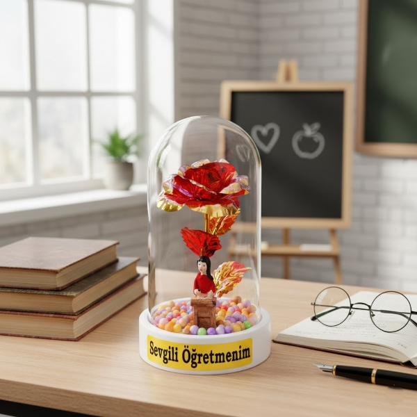 Sonsuzluk Güllü Ters Fanus – Öğretmenler Günü Hediyesi