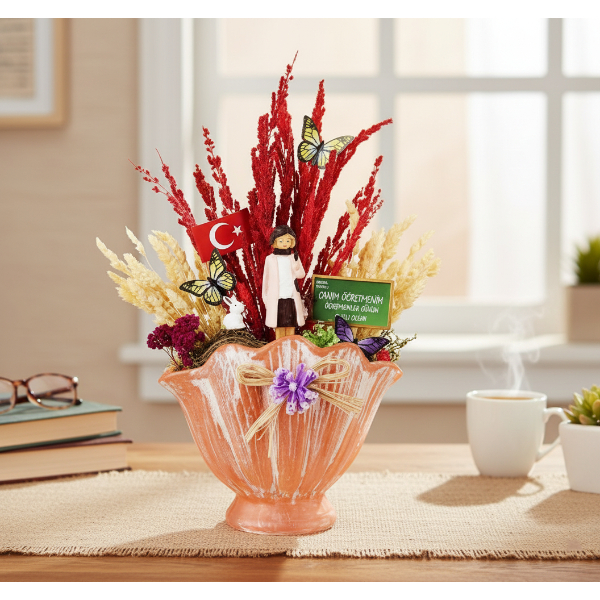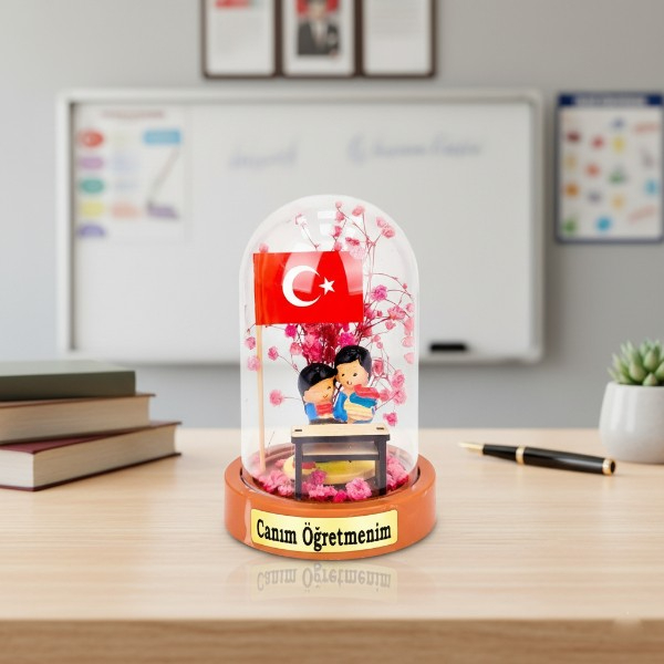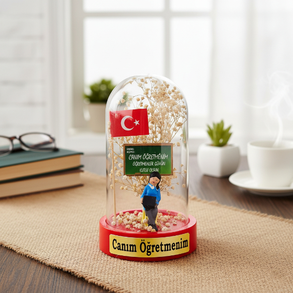 Türk Bayraklı Sıralı Ters Fanus – Öğretmenler Günü Hediyesi